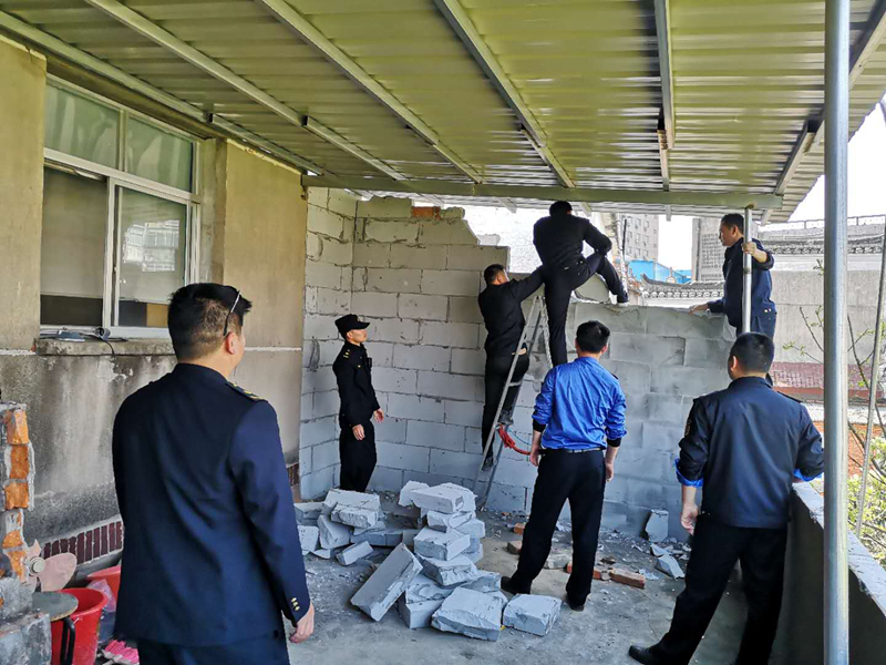 4月8日,市城管局對萬壽巷五處違法建設(shè)依法進行集中拆除。