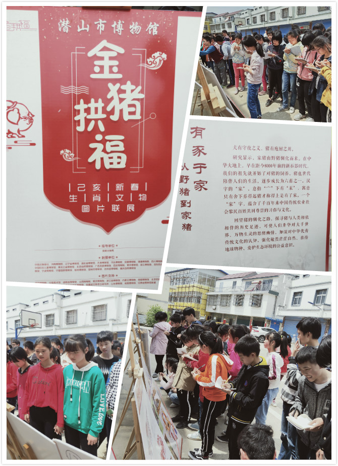 4月16日,油壩鄉(xiāng)中心學(xué)校組織學(xué)生參加潛山市博物館、文化館聯(lián)合聯(lián)辦“金豬拱福”生肖文物圖片聯(lián)展活動。