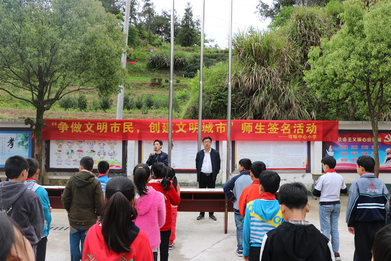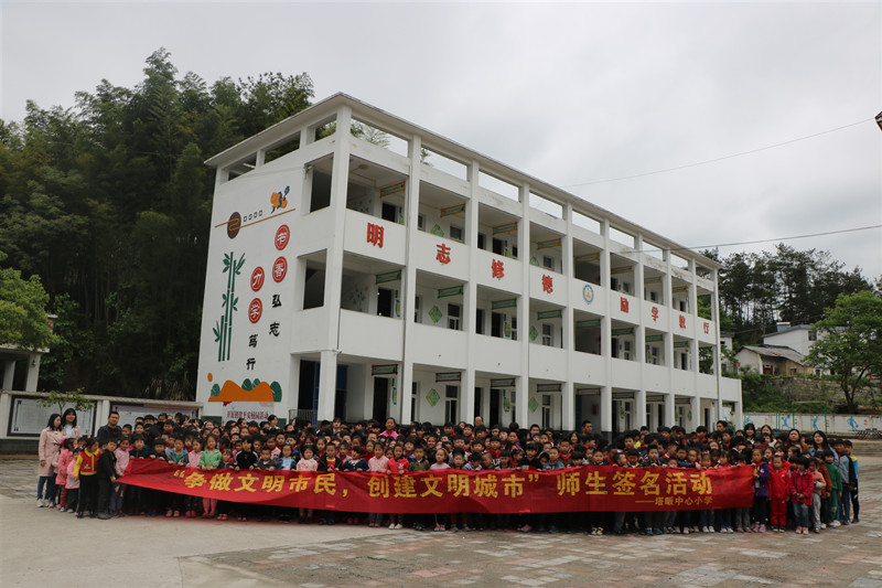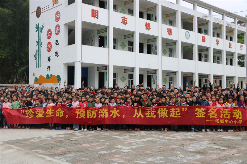 4月30日上午,塔畈中心小學利用大課間時間組織全體師生開展預防溺水暨文明創(chuàng)建簽名活動。
