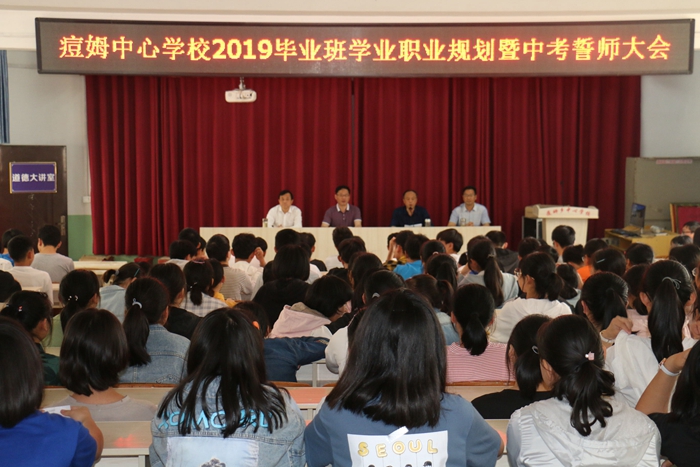 “十年寒窗,盼前程似錦;一月苦戰(zhàn),誓金榜題名”。為增強(qiáng)初三學(xué)生做好學(xué)業(yè)職業(yè)規(guī)劃、迎戰(zhàn)中考的信心,激發(fā)學(xué)生的拼搏精神,5月14日上午,痘姆中心學(xué)校隆重舉行了“2019畢業(yè)班學(xué)業(yè)職業(yè)規(guī)劃、沖刺中考誓師大會(huì)”。畢業(yè)班全體師生參加了會(huì)議。