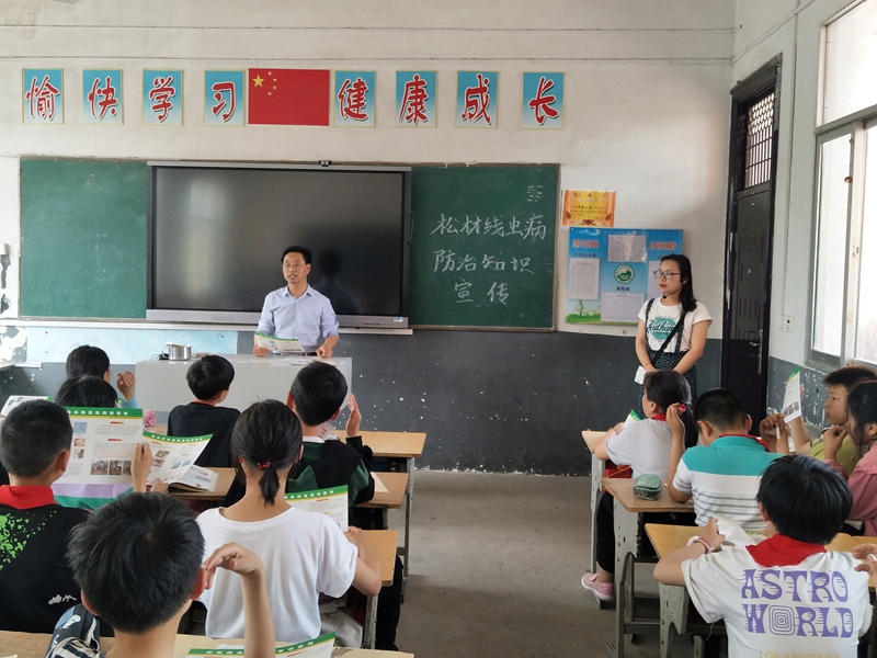5月24日,市林業(yè)局森防站和痘姆鄉(xiāng)林業(yè)站一起來到痘姆鄉(xiāng)中心小學(xué)開展松材線蟲病防控知識宣傳活動,向全體教職工和學(xué)生宣傳松材線蟲病防控知識,給全體師生上了一堂生動的松材線蟲病防控知識課,向廣大師生發(fā)放宣傳畫冊850份。