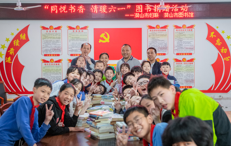 同悅書香,情暖六一,5月30日,潛山市婦聯(lián)、圖書館開展送書進校園活動。