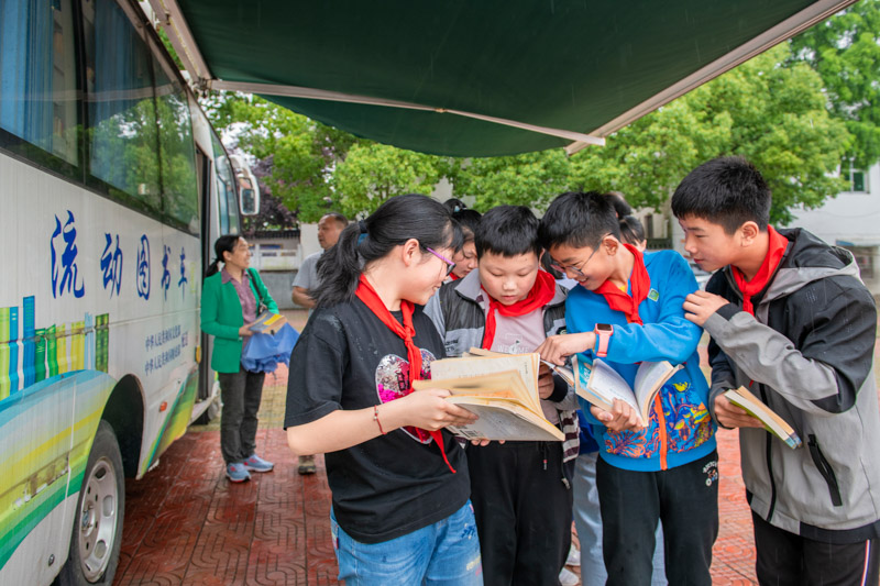 當日,潛山市圖書館的流動圖書車駛進余井鎮(zhèn)嶺頭中心小學,孩子們紛紛圍上來。“真新鮮,汽車竟然變成了圖書館,上面有書架,還能運這么多圖書!”六年級一班學生徐婉瑩一邊翻著漫畫書,一邊驚嘆。