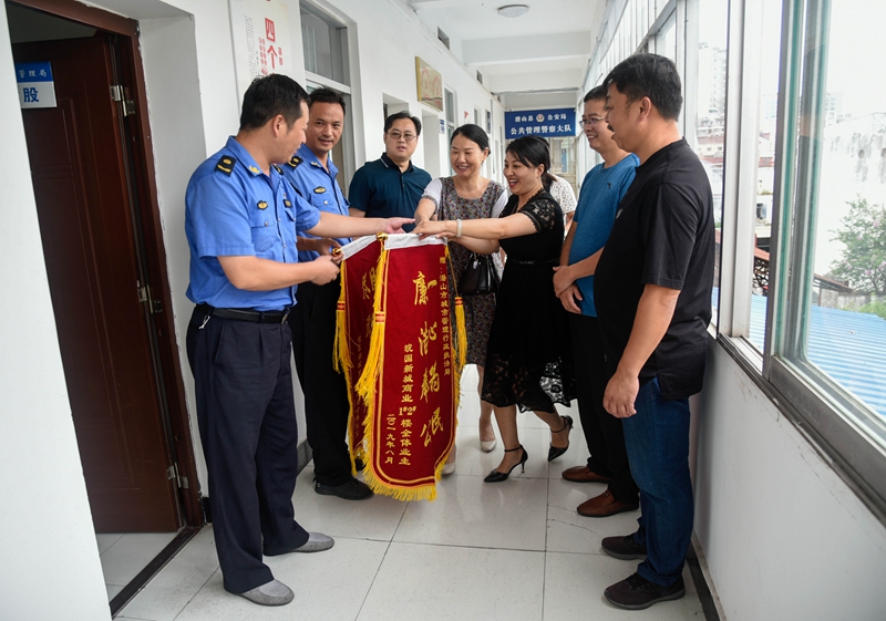 8月12日,皖國新城商業(yè)4號樓、5號樓業(yè)主代表送來兩面錦旗,上寫“服務(wù)熱情·盡職盡責(zé)”、“一心為民·廉潔奉公”,感謝城管局解決了他們的“停車難”問題。
