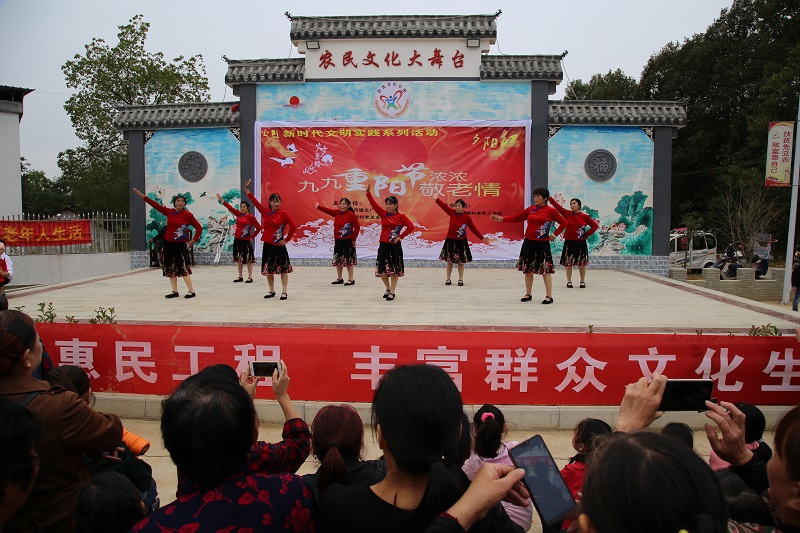 在上午召開(kāi)的敬老大會(huì)上,王河鎮(zhèn)黨委、關(guān)工委、河鎮(zhèn)村村兩委以及前來(lái)參加的佳賓分別向老人們送上了真誠(chéng)的祝福,村兩委還分別向“老年楷模”、“好妻子”、“好公公”、“友誼賓朋”、“愛(ài)心楷模”等七位先進(jìn)老人頒發(fā)了獎(jiǎng)品和證書(shū)。村新時(shí)代舞蹈隊(duì)和夕陽(yáng)紅舞蹈隊(duì)以及當(dāng)?shù)馗栌演喎菆?chǎng)分別即興表演了廣場(chǎng)舞和精典黃梅戲片段。下午,村老年協(xié)會(huì)還專(zhuān)門(mén)聘請(qǐng)了太湖縣草根文藝劇團(tuán)為老人們奉獻(xiàn)了11個(gè)精彩節(jié)目。絲竹管弦、黃梅鄉(xiāng)音,精彩的表演讓老人們一個(gè)個(gè)陶醉其中;歌聲、掌聲、音樂(lè)聲更是將村文化廣場(chǎng)匯集成一片歡樂(lè)的海洋。