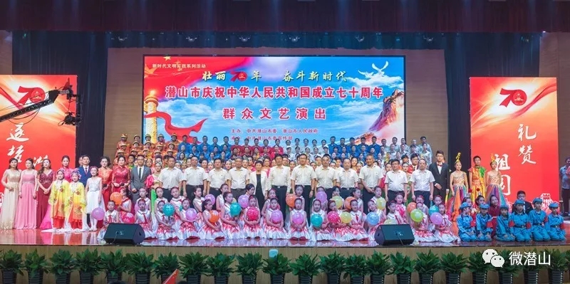 9月30日,我市在安徽天柱山旅游學校大禮堂舉行慶祝新中國成立70周年群眾文藝演出。市領(lǐng)導(dǎo)張勁松、梅耐雪、黃銀枝、郭玉晟、余華明等與來自全市各條戰(zhàn)線的干部群眾代表歡聚一堂,在精彩紛呈的文藝演出中銘記歷史、展望未來,共賀新中國成立70周年,傳遞58萬潛陽兒女誠摯的祝福。
