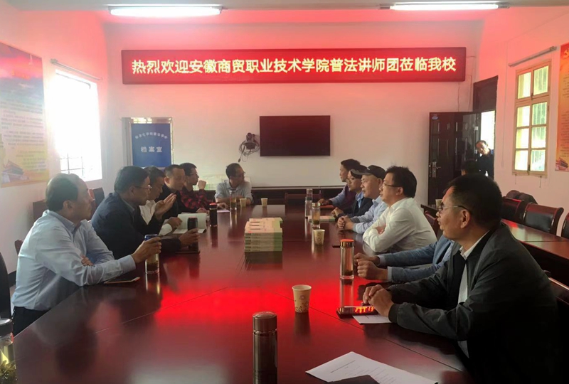 10月18日, 安徽商貿(mào)職業(yè)技術(shù)學(xué)院一行到龍?zhí)吨行膶W(xué)校開(kāi)展普法宣講活動(dòng),安徽商貿(mào)職業(yè)技術(shù)學(xué)院、市教育局、龍?zhí)多l(xiāng)相關(guān)負(fù)責(zé)人出席活動(dòng)。
