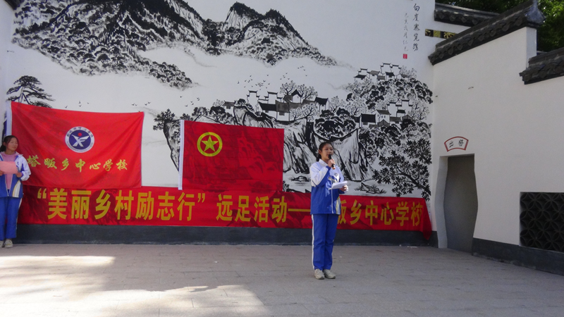 經(jīng)過一個多小時的跋涉,同學(xué)們來到了塔畈鄉(xiāng)西峰凌老屋新村。這里綠竹環(huán)繞,徽墨生香。同學(xué)唱起了《我和我的祖國》,嘹亮的歌聲響徹山谷;團支部舉行了莊重的新團員入團宣誓,錚錚誓言擲地有聲;老師們表演了黃梅戲選段,柔美的旋律如絲如縷;同學(xué)講起了“家鄉(xiāng)美”的故事。學(xué)校負責(zé)人向同學(xué)們發(fā)出了“美麗中國,青春行動”的倡議。