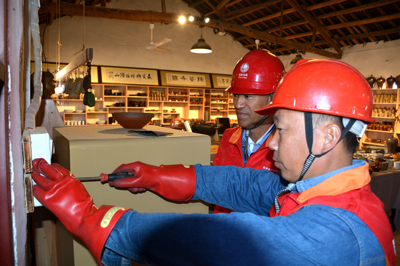 11月5日,潛山供電公司天柱山中心供電所黨員服務(wù)隊(duì)成員為安徽省非物質(zhì)文化遺產(chǎn)痘姆古陶傳習(xí)基地檢修用電設(shè)備,消除安全隱患。