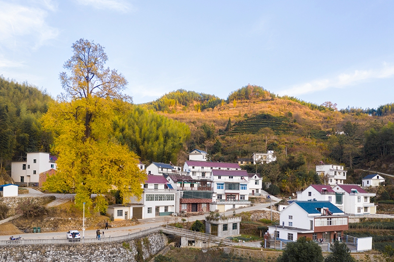 在國(guó)有林場(chǎng)護(hù)綠的同時(shí),山區(qū)群眾也愛山護(hù)山,注重森林資源保護(hù),用活綠色資源。五廟鄉(xiāng)程沖村有一棵千年銀杏樹,當(dāng)?shù)卮迕駥?duì)它愛護(hù)有加。依托這棵古銀杏,程沖村在周邊山場(chǎng)、茶園種下了2萬多棵銀杏樹,打造金色銀杏谷。
