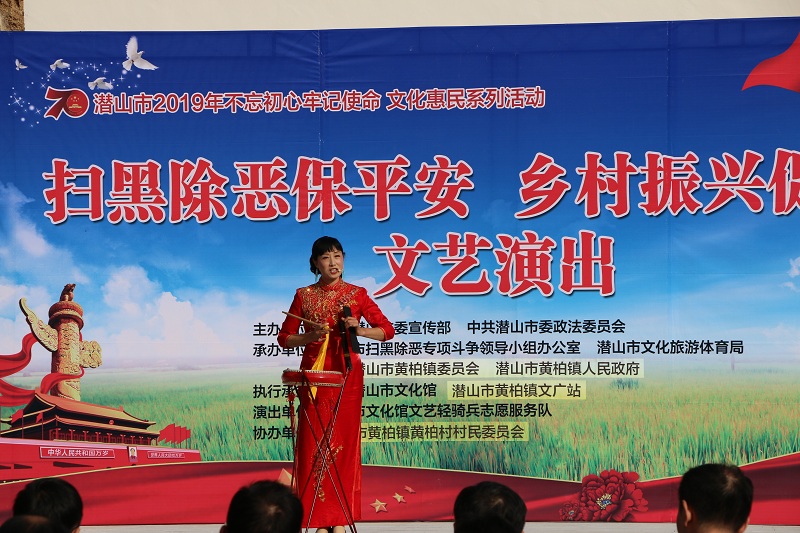 11月21日,由中共潛山市委宣傳部、中共潛山市委政法委主辦,市掃黑辦、市文旅體局、中共潛山市黃柏鎮(zhèn)委員會、黃柏鎮(zhèn)人民政府承辦,市文化館、黃柏文廣站執(zhí)行承辦的“掃黑除惡保平安·鄉(xiāng)村振興促發(fā)展”文藝演出在我市黃柏鎮(zhèn)黃柏村舉行,吸引了黃柏村及周邊村近千村民前往觀看。