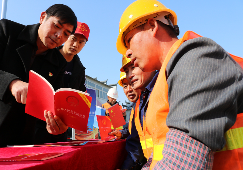 今年12月4日是第六個(gè)國家憲法日,也將迎來第二個(gè)憲法宣傳周。為深入貫徹黨的十九屆四中全會(huì)精神,弘揚(yáng)憲法精神,樹立憲法權(quán)威。12月4日下午,中鐵上海局安九鐵路安徽段項(xiàng)目部三分部、梁場聯(lián)合開展了2019年“憲法宣傳日”活動(dòng)。