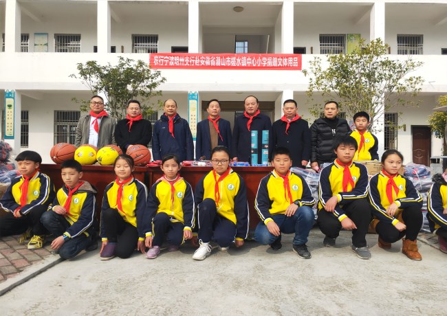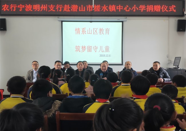 12月6日,農(nóng)行寧波明州支行赴槎水鎮(zhèn)中心小學開展捐贈活動,農(nóng)行寧波明州支行負責人葉聲,農(nóng)行安徽省分行、安慶分行、潛山支行相關(guān)負責人一行等來到槎水鎮(zhèn)中心小學,為學生們帶來了價值3萬余元的文體用品物資,鎮(zhèn)黨委主要負責人陪同。