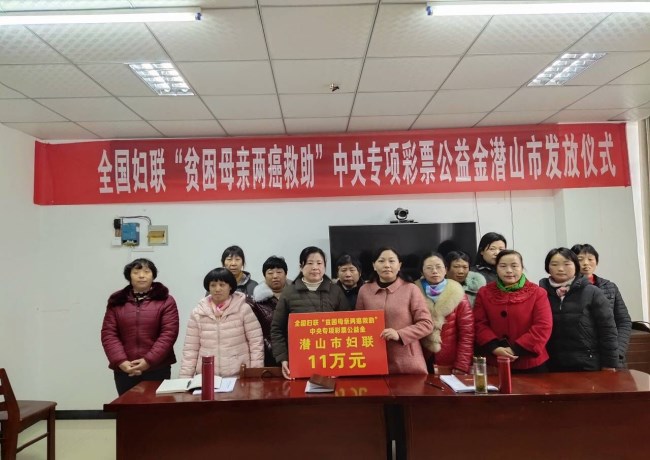 12月18日,潛山市婦聯(lián)副主席一行冒著嚴(yán)寒來(lái)到槎水,在鎮(zhèn)政府隆重舉行婦聯(lián)“貧困母親兩癌救助”中央專項(xiàng)彩票公益金發(fā)放儀式,為11名患“兩癌”貧困受助婦女發(fā)放了人均1萬(wàn)元,共計(jì)11萬(wàn)元的專項(xiàng)救助項(xiàng)目資金。各村婦聯(lián)主席、受到救助的11名“兩癌”貧困婦女及部分家屬20余人參加了發(fā)放儀式。