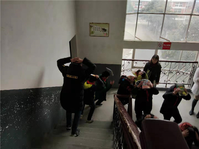 下午14點10分,隨著警報聲的響起,防地震安全逃生演練開始,各小組人員快速到位,各班級老師立即告知學生“地震了,不要慌”,首先進行避險,接著指揮學生緊急撤離(指導學生迅速抱頭,盡量蜷曲身體,降低身體重心,并盡可能保護頭部迅速有序的撤離),分別從安全通道緊急疏散到學校安全空曠的操場緊急避難。全校800名師生全部到達指定場地并安全完成演練任務,從警報響起到全部安全應急逃生,用時4分鐘不到。整個地震逃生過程當中,學生基本做到下樓梯快速行走,先到先下,無強行沖、擠行為,動作迅速,不吵鬧,不慌亂。