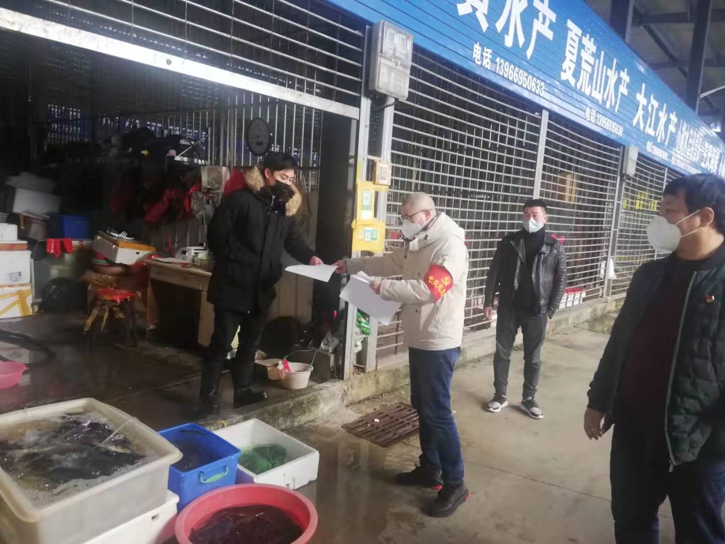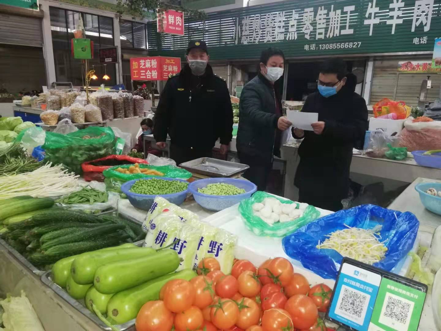 市商務局市場服務中心工作人員會同市監(jiān)局,向經(jīng)營戶宣傳防控