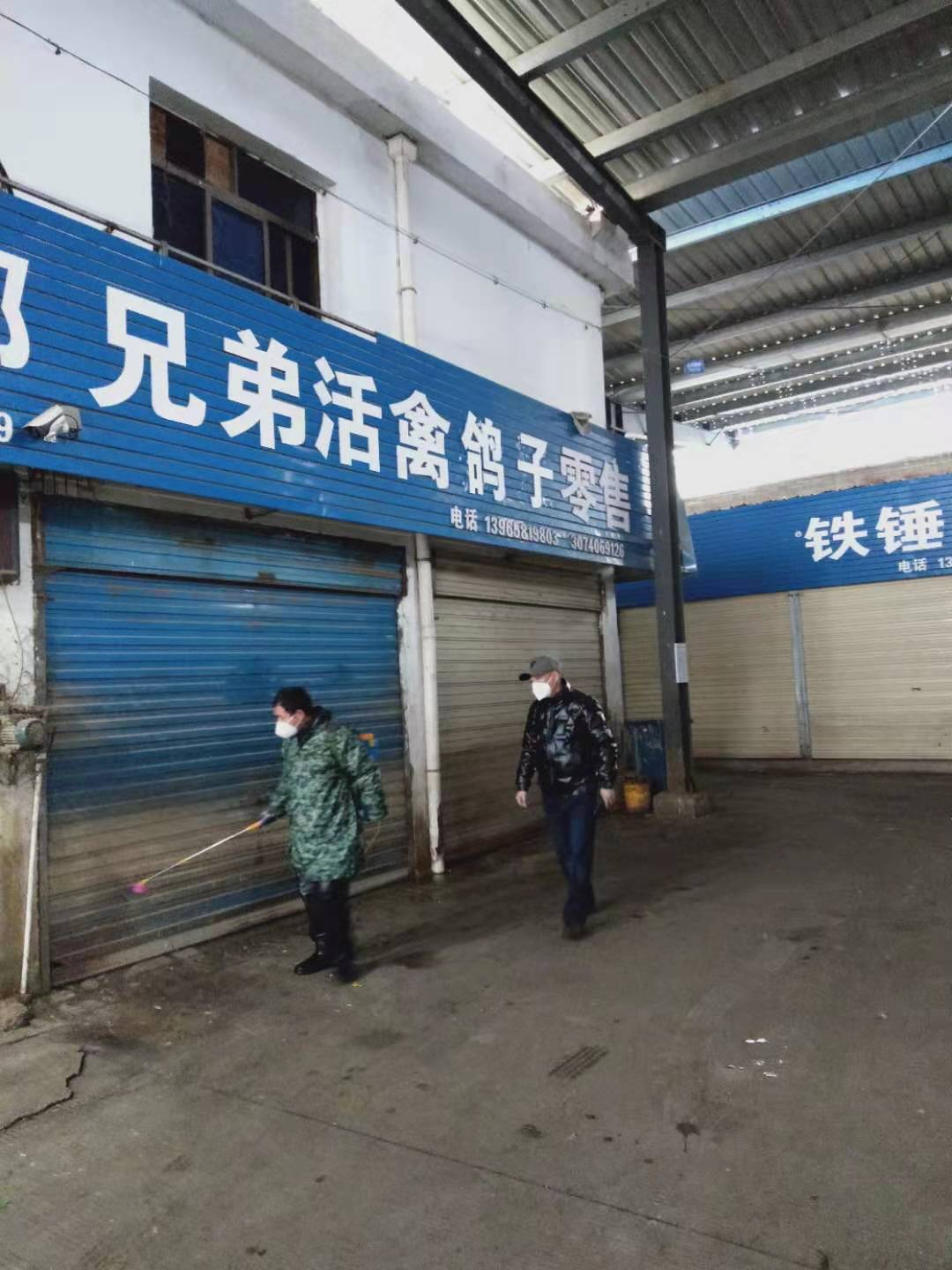 市商務局市場服務中心工作人員加強自產(chǎn)自銷區(qū)衛(wèi)生清理消毒工作