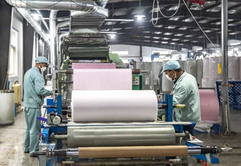 在首批復(fù)工的企業(yè)中,安徽嘉欣醫(yī)療用品有限公司充分發(fā)揮防控主體責(zé)任,對企業(yè)內(nèi)220多名員工的生活軌跡、人員接觸、身體狀況進(jìn)行全面篩查。同時(shí),公司還配備了3000多個(gè)口罩、200公升的酒精和消毒液,每天,安排人員對公司內(nèi)部進(jìn)行消毒,設(shè)立班組長防疫工作責(zé)任制,實(shí)行班班有人看,人人有人盯。“車間主管是第一責(zé)任人,班組長各個(gè)班組的直接責(zé)任人。我們每天的排查信息收集、體溫測量、防疫消毒都是有各個(gè)車間主管親自抓。”安徽嘉欣醫(yī)療用品有限公司執(zhí)行經(jīng)理江宏松說。