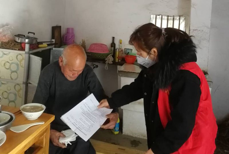 針對(duì)各村的獨(dú)居老人、分散特困供養(yǎng)對(duì)象,痘姆鄉(xiāng)建立并落實(shí)了四級(jí)包保責(zé)任制,全鄉(xiāng)104名分散供養(yǎng)五保戶均有相應(yīng)的四位包保責(zé)任人。紅星村扶貧隊(duì)長汪志國告訴我們:“包保責(zé)任人均上門給五保戶發(fā)了口罩,并現(xiàn)場(chǎng)示范正確佩戴方法,同時(shí)幫助五保戶對(duì)屋里屋外進(jìn)行全面消毒,引導(dǎo)他們搞好個(gè)人衛(wèi)生、定時(shí)測(cè)量體溫”。除了包保責(zé)任人的定期走訪,各村團(tuán)支部、婦聯(lián)還發(fā)動(dòng)志愿者們對(duì)村內(nèi)弱勢(shì)群體上門開展疫情防控知識(shí)宣傳,勸導(dǎo)他們常洗手、多通風(fēng)、少外出,提高自我防護(hù)意識(shí),增強(qiáng)科學(xué)防控能力。