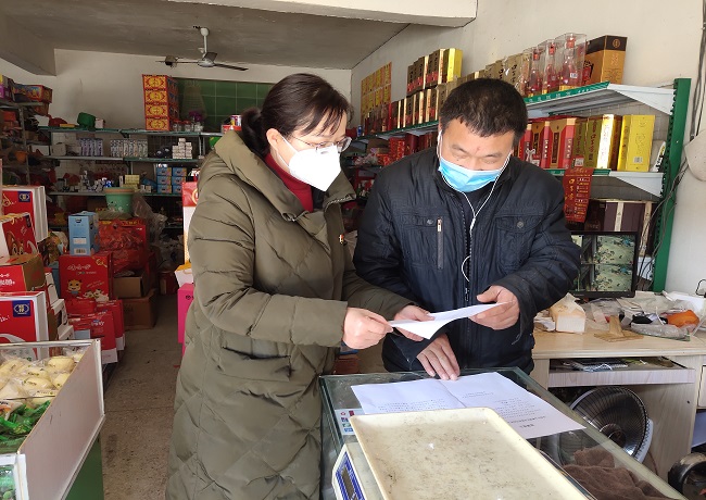 程灣村第一書記華云霞主動(dòng)提前返崗,自正月初二開始就主動(dòng)堅(jiān)守在崗位上,入戶送宣傳材料、堅(jiān)守檢測(cè)點(diǎn),她最關(guān)心的還是程灣村的貧困戶。她和扶貧專干通過電話聯(lián)系貧困戶,細(xì)細(xì)叮囑他們注意事項(xiàng)。