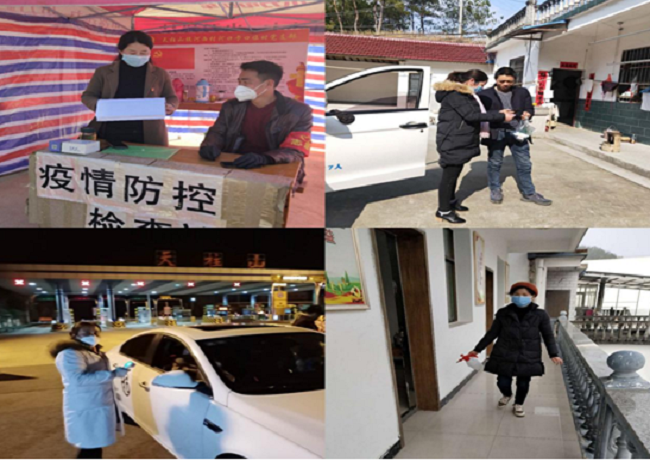 “沒(méi)有特殊情況,兩天出去一次,你昨天出去一趟了,今天沒(méi)啥事就待在家休息唄”。黨員何小娟正在耐心勸返想要外出的村民,她每天都會(huì)在河口執(zhí)勤點(diǎn)站崗,測(cè)量體溫、登記信息、宣傳政策、勸返人員,她對(duì)于每一個(gè)環(huán)節(jié)早已輕車熟路。黨員陳云芳、入黨積極分子彭玲,還有不愿透露姓名的姐妹花,她們或頂著寒風(fēng)、或迎著雨雪,在不同的執(zhí)勤點(diǎn)駐守著,“內(nèi)防輸出、外防輸入”,嚴(yán)之又嚴(yán)、慎之又慎、細(xì)之又細(xì)。“不能因細(xì)節(jié)問(wèn)題而影響防疫全局”,陳云芳說(shuō)。