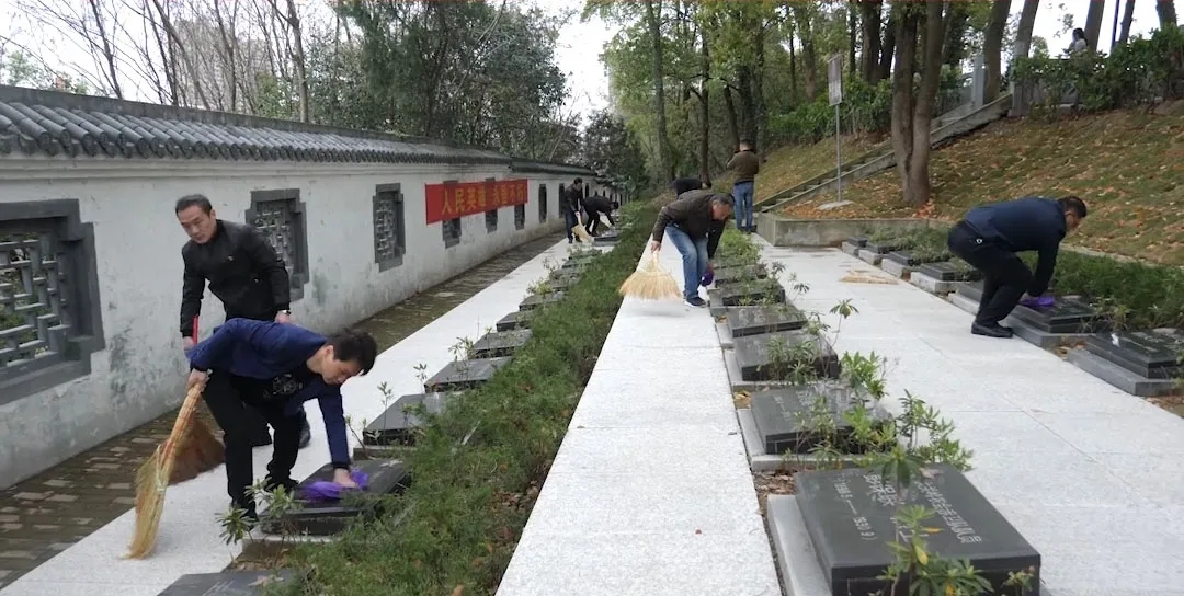 人民英雄紀(jì)念碑下,工作人員站立兩列,神情肅穆,向革命先烈敬獻花籃,向烈士們?nèi)瞎?。鮮花代替紙錢,響應(yīng)了生態(tài)祭祀,深化了移風(fēng)易俗工作,同時也表達對親人無限的緬懷,寄托不盡的哀思。隨后,全體人員來到烈士墓前,清掃墓前落葉,耐心細(xì)致擦拭墓碑,并向安葬在陵園的每一位烈士獻上鮮花,全體工作人員虔誠鞠躬行禮。(江道良 程辛林)