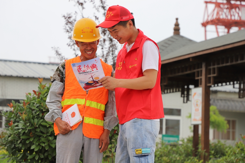 為了深入學習貫徹習近平總書記在中央政治局第二十次集體學習時的重要講話精神,切實加強學習宣傳實施民法典工作。6月7日下午,中鐵上海工程局安九鐵路安徽段項目部開展了“《民法典》宣傳進工地”活動,為廣大職工普及法律知識。該項目還邀請了公共法律服務中心的余律師為農民工提供提供法律咨詢及法律援助,增強他們依法維護自身合法權益的意識。
