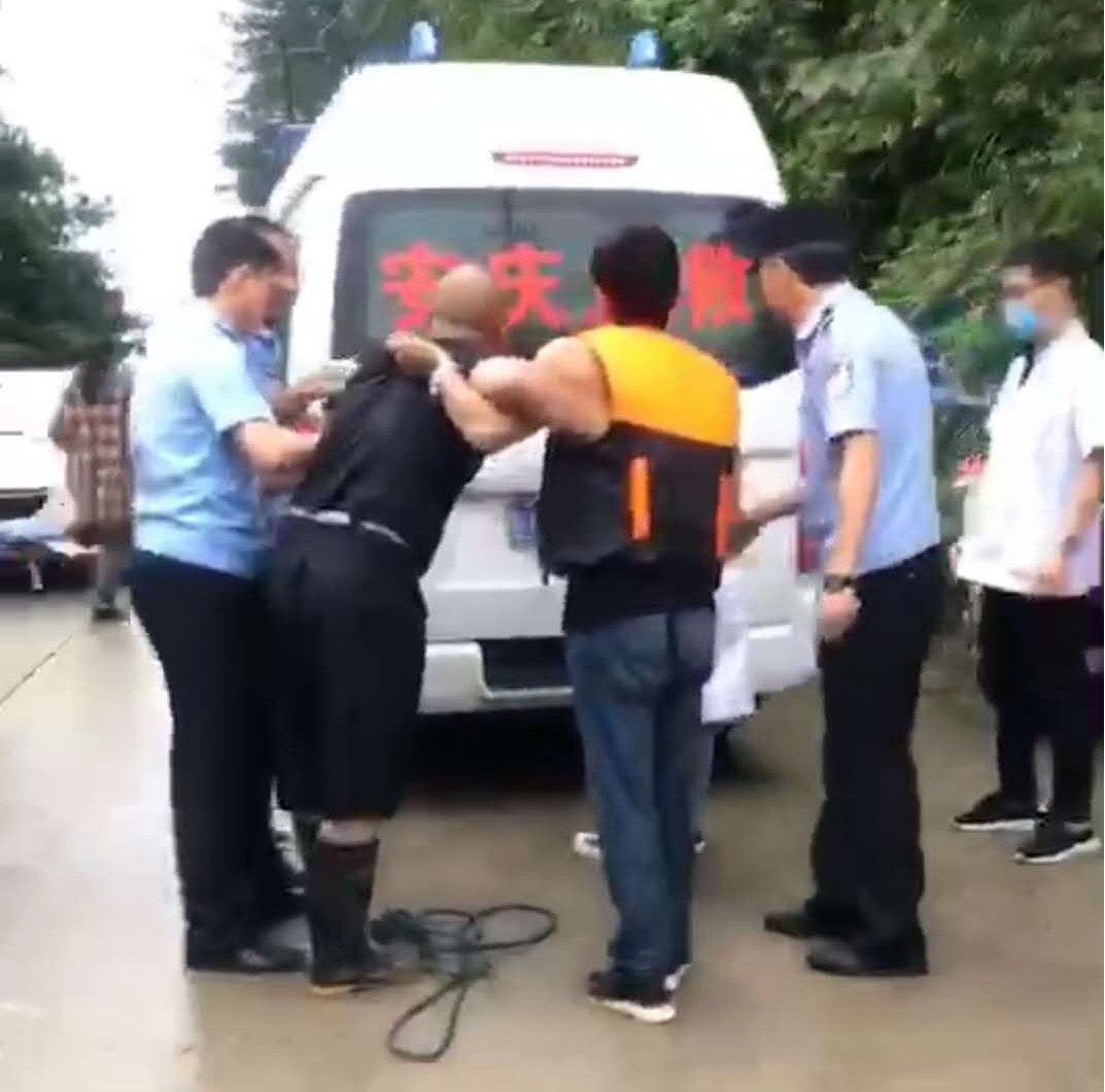“遞根繩子給我”,流水太急,下水后的陳尚鋒試圖接近張何清,但又被急水阻隔開,情急之下,便向岸邊的群眾尋求幫助,村民組長陳小年火速借來繩子,村民朱太平接著繩子也下到了岸底。痘姆鄉(xiāng)黨委副書記江海峰正巧和村干葛文明等人在巡查地質(zhì)災(zāi)害點,發(fā)現(xiàn)有群眾圍觀后,火速沖到一線參與救援。陳尚鋒爭分奪秒,將繩子緊緊系在張何清的腰上,河水仍在洶涌,在陳尚鋒的帶領(lǐng)下,廣大干群齊心協(xié)力、接力用勁,終于不負(fù)眾望,成功將張何清拉回岸上。此時,參與救援的人員衣服都濕透了,岸上原本茂密的樹叢,也被救援人員踩出了一條生命線。鄉(xiāng)安監(jiān)辦、黃鋪派出所、市消防救援大隊人員相繼趕來現(xiàn)場,對事發(fā)情況進行了解,對現(xiàn)場圍觀群眾進行交通疏導(dǎo)。