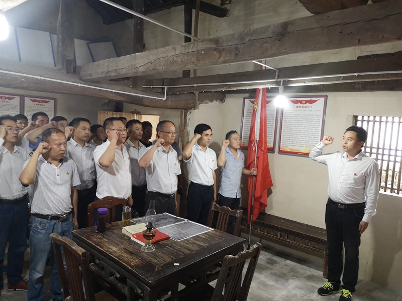 全體人員步行到烈士陵園,在烈士紀(jì)念碑前向革命先烈敬獻(xiàn)了花籃,參觀了革命事跡陳列館,在水吼鎮(zhèn)石河農(nóng)會(huì)舊址及野寨抗日英烈公墓,緬懷了英雄事跡,傳承紅色基因,接受革命傳統(tǒng)和愛(ài)國(guó)主義教育的洗禮。在五廟紅光村潛山第一黨小組舊址,通過(guò)一張張先烈事跡圖片的展示及講解員的生動(dòng)講解,全體人員接受了一場(chǎng)深刻的思想洗禮和黨性教育,重溫了入黨誓言,堅(jiān)定了“不忘初心、繼續(xù)前進(jìn)”的決心和信心。