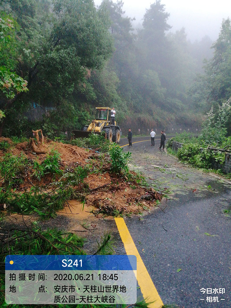 受近幾日強降雨影響,6月21日17時,潛山天柱山旅游公路S241省道K203十800左邊坡塌方占據(jù)了公路半幅路面。