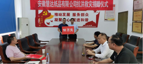 7月16日,安徽慧達(dá)紙品有限公司助力官莊鎮(zhèn)抗洪救災(zāi),分別捐贈官莊鎮(zhèn)5萬元,壇畈村5萬元,捐贈儀式在鎮(zhèn)政府會議室舉行,安徽慧達(dá)紙品有限公司劉傳海、劉方圓,鎮(zhèn)黨委主要負(fù)責(zé)同志及相關(guān)負(fù)責(zé)同志參加捐贈儀式。