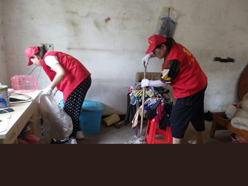 活動(dòng)中,志愿者們明確分工。“清洗隊(duì)”負(fù)責(zé)將居民的餐具,生活用品,衣服等進(jìn)行清洗,并對廚房、客廳、臥室進(jìn)行打掃和擦拭。“清理隊(duì)”主要由年輕的志愿者組成,負(fù)責(zé)清理房前屋后的垃圾,搬運(yùn)沉重的家具,清運(yùn)雜物、打掃庭院衛(wèi)生。“整理隊(duì)”則負(fù)責(zé)將居民的房間進(jìn)行全面的整理和歸納,并幫助居民折衣服、疊被子,生活物品擺放整齊。志愿者們各司其職、相互配合,以超高的積極性和效率讓屋內(nèi)變得干凈、清新、井然有序。