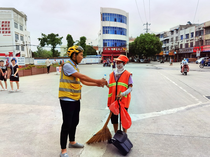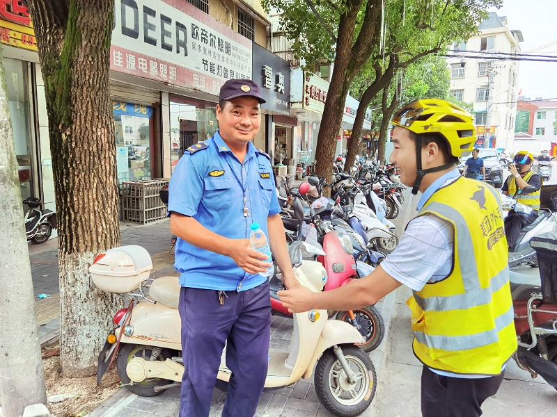 8月21日,團市委聯(lián)合潛山美團外賣運營中心,組織外賣小哥沿街尋找堅守在崗位的交警、環(huán)衛(wèi)工人、城管執(zhí)法工作人員……每遇見一位就熱情地給他們送上礦泉水和防暑降溫用品,在這個炎炎夏日,志愿者親切的問候和濃濃的關(guān)懷給一線勞動者帶來了愜意與清涼,讓他們十分感動。