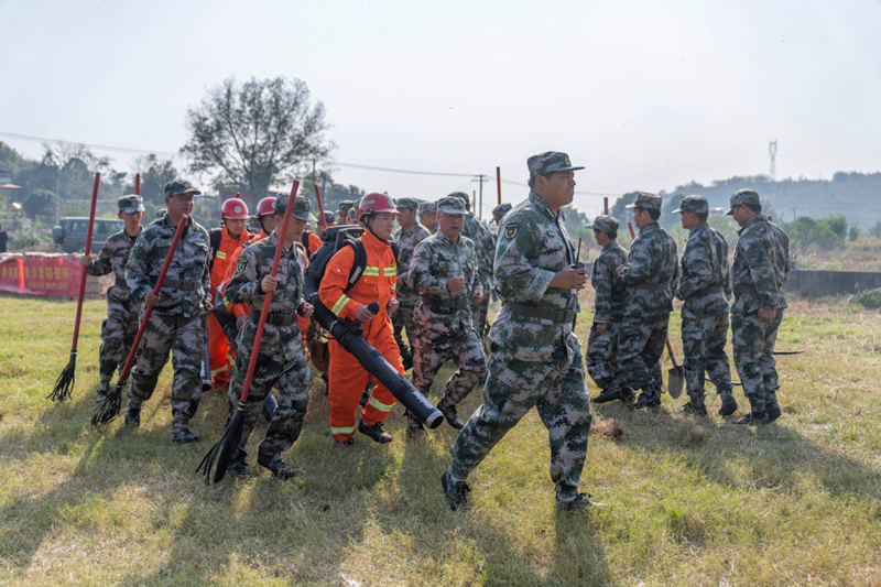 市領(lǐng)導(dǎo)一行現(xiàn)場(chǎng)觀摩了潛山市民兵應(yīng)急分隊(duì)輪訓(xùn)備勤訓(xùn)練科目演練。訓(xùn)練場(chǎng)上,民兵應(yīng)急分隊(duì)沉著冷靜、嫻熟自如地演示了指揮機(jī)構(gòu)開設(shè)、反恐維穩(wěn)處突、森林滅火等科目。參演民兵軍容嚴(yán)整、士氣高昂、技術(shù)熟練,展現(xiàn)了潛山民兵“特別能吃苦、特別能戰(zhàn)斗”的精神風(fēng)貌。
