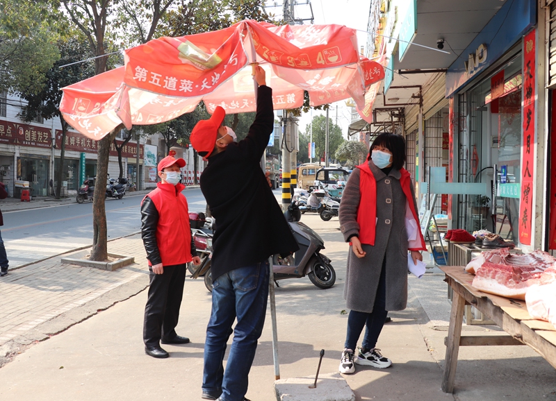 志愿者們分工協(xié)助,對(duì)路邊亂堆亂放的垃圾進(jìn)行清運(yùn),對(duì)占道經(jīng)營(yíng)的商戶進(jìn)行勸阻,并同步發(fā)放了《潛山市創(chuàng)建全國(guó)文明城市倡議書》。