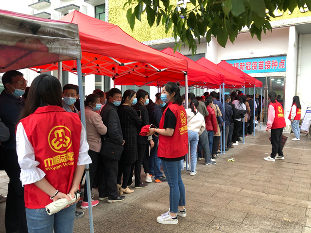 5月19日,官莊鎮(zhèn)組織巾幗志愿者開展疫苗接種志愿服務活動。