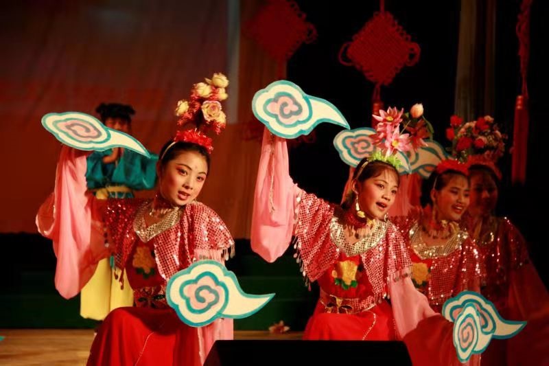 “正月梅花香,渡春江,點(diǎn)綴好風(fēng)光……”這意境高雅優(yōu)美的歌詞和溫婉圓潤的唱腔散發(fā)著古民樂濃濃的韻味,它來自黃泥民間歌舞“十二月花神”。