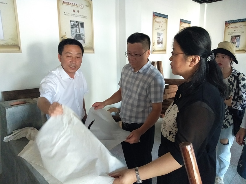 與此同時,研討團隊一行深入官莊桑皮紙傳習(xí)基地、痘姆古陶基地等非遺點,與非遺傳承人交流,探討潛山非遺活態(tài)傳承的有益措施。