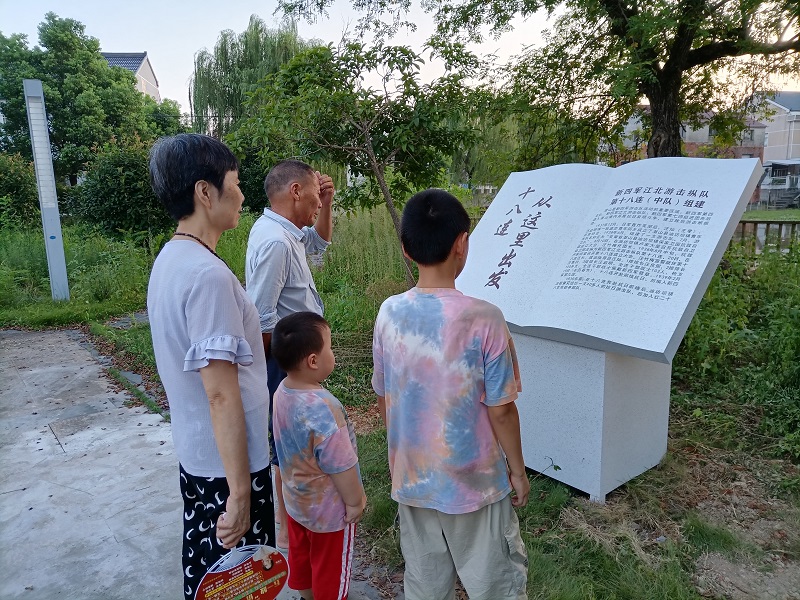 經(jīng)過打造的十八連出發(fā)地的標志巍然豎立在油壩盧祠文化廣場。如今,這里已成為人們開展黨史學習教育的又一個紅色景點。