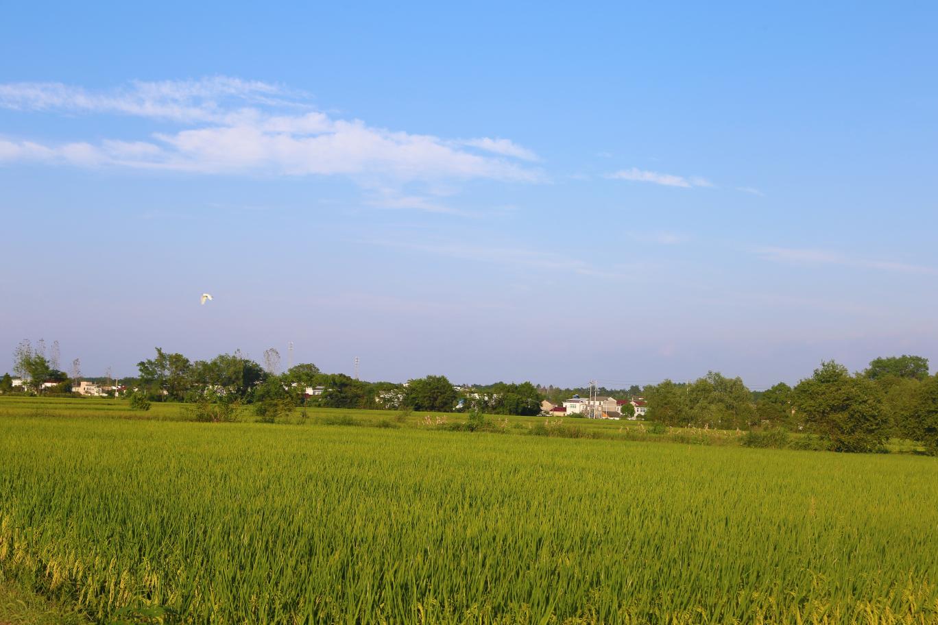 金秋時(shí)節(jié),潛山市余井鎮(zhèn)的鄉(xiāng)村,田間遍地金黃。行走在安徽慶草堂農(nóng)場中醫(yī)農(nóng)業(yè)示范基地水稻田壟間,一塊塊漸熟變黃的水稻田圍繞著一棟棟灰瓦白墻的民居,從鏡頭中不斷延伸至遠(yuǎn)方,微風(fēng)吹拂,翻滾的稻浪送來一陣陣稻谷清香,構(gòu)成了一幅生態(tài)優(yōu)美的金秋田園畫卷。