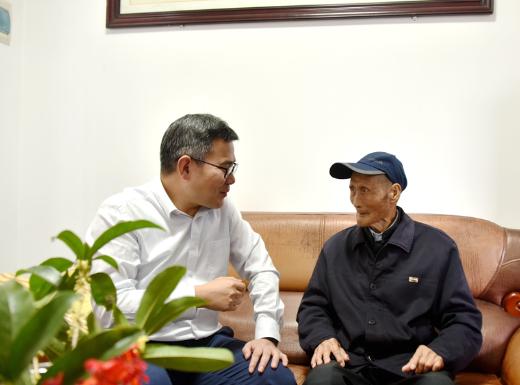 在百歲老人涂于剛家中,王國(guó)林詳細(xì)詢問老人生活情況,得知老人身體無大病,四世同堂,家庭幸福,王國(guó)林很是欣慰,為老人送上慰問金,叮囑其家人要悉心照顧好老人的生活,衛(wèi)健部門和鎮(zhèn)村要做好日常隨訪和健康服務(wù),讓老人度過一個(gè)幸福的晚年。