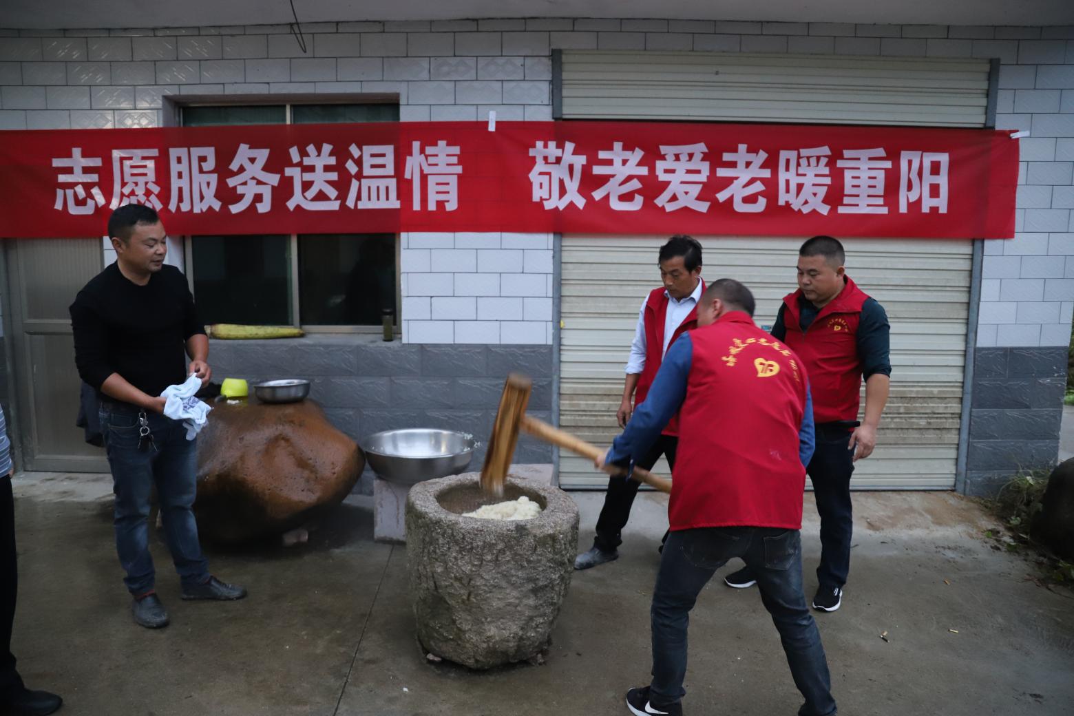 早上七點(diǎn),志愿者們帶著制作原料和工具來到敬老院為老人們現(xiàn)場(chǎng)制作糍粑,老人們吃著熱乎的糍粑,臉上洋溢著幸福的笑容。隨后,志愿者們?nèi)サ礁鞔蹇赐粘怖先?,并送去慰問禮品及節(jié)日祝福。敬老院內(nèi),文體志愿者們各施所長(zhǎng),黃梅戲、快板、舞蹈、打連廂等極具本土文化特色的節(jié)目一一上演,現(xiàn)場(chǎng)氣氛熱烈,掌聲不斷,大家歡聚一堂,其樂融融,讓老人們?cè)谂惆榕c歡笑中度過一個(gè)愉快、溫馨的重陽(yáng)節(jié)。